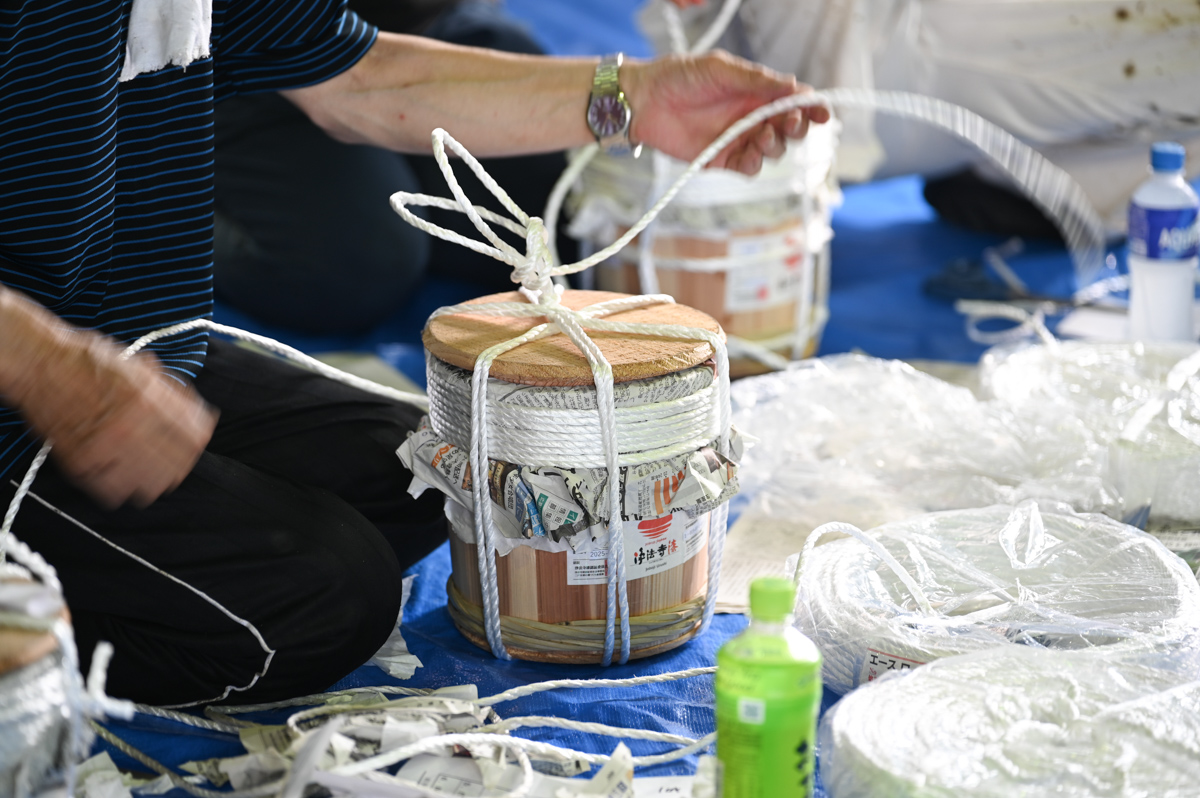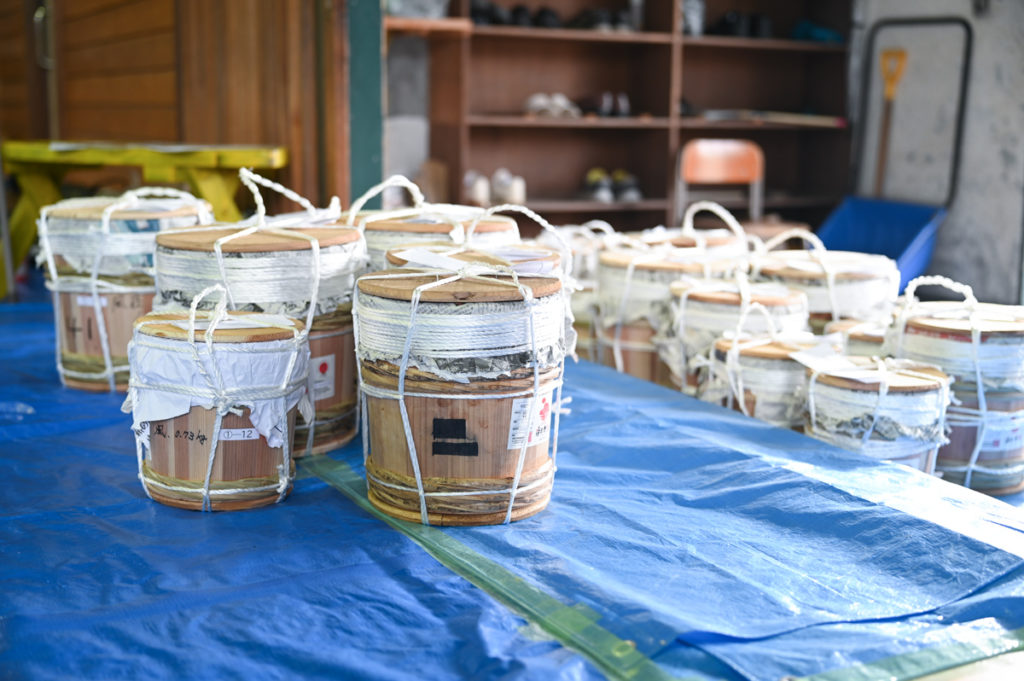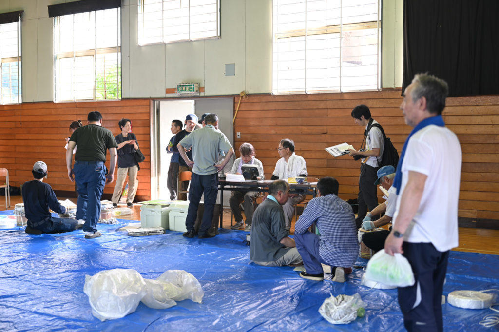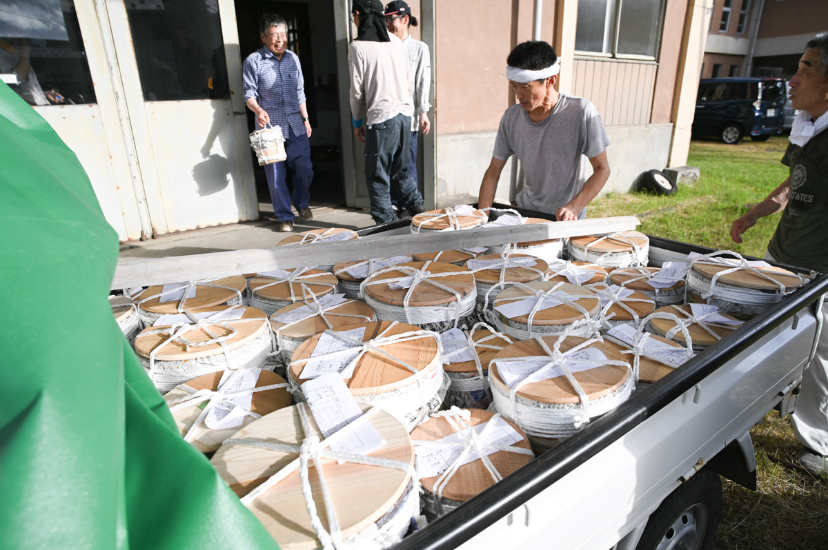 おしらせ 浄法寺漆の2025年 初出荷会が行われました。 2025年8月7日 2025年8月7日 jobojiurushi-Administrator 2025年8月5日(火)、浄法寺漆生産組合に所属する漆掻き職人たちによる初出荷会が開催されました。 本年もブランド認定の品評が行われる際、職人さん同士の意見交流も活発に行われ、知見や経験の共有が図られました。 今年は厳しい暑さと異例とも言える雨の少なさで、職人さんいわく収量は少なめだとか。恵みの雨に期待したいです。 この初出荷会では266kgの漆が出荷となりました。軽トラックいっぱいに積みましたが、運転はくれぐれも慎重に…!